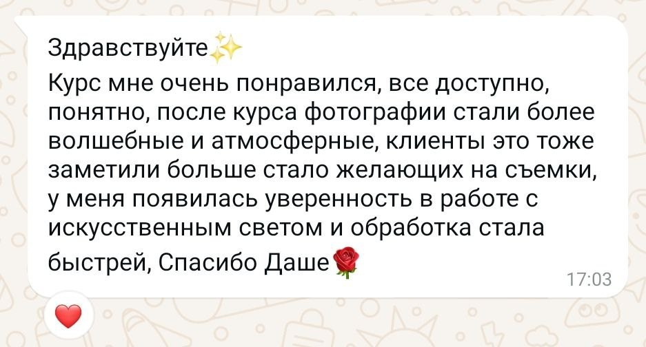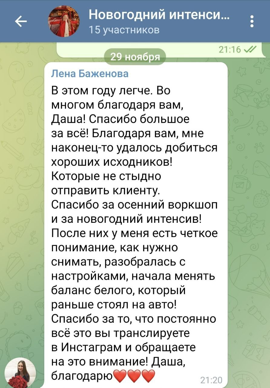Именно поэтому я создала этот комплект из 4 уроков — чтобы вы могли уверенно работать с естественным светом в любых условиях и получать качественные исходники уже на съёмке.